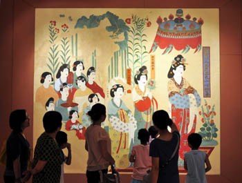 今夏“博蘊(yùn)華光敦煌藝術(shù)展”在深圳開展,展覽展出內(nèi)容主要包括原大敦煌石窟復(fù)制洞窟、壁畫臨本、藏經(jīng)洞絹畫復(fù)制品、彩塑復(fù)制品、精品文獻(xiàn)等。新華社發(fā)(賀友保/攝) |