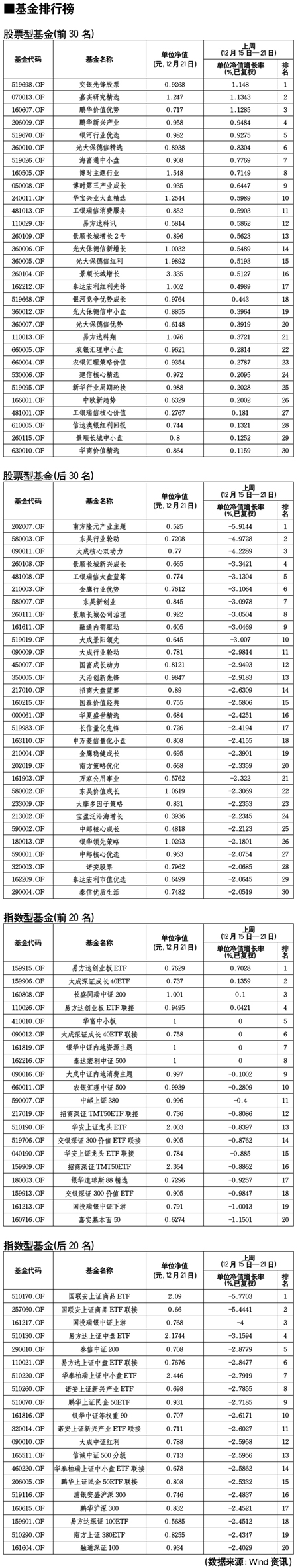 股票型基金排行榜[2011-12-23]