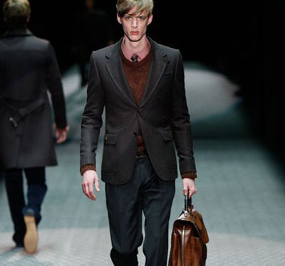 Gucci 創(chuàng)作總監(jiān)Frida Giannini針對2011秋冬男裝,提出時髦有型的新Dandy風(fēng)格。描述一位熱愛浮華與傳統(tǒng)并濟姿態(tài)的男子,在鱷魚皮或駝鳥皮雙排扣大衣或風(fēng)衣之下變換著自己的樣貌。一種催人心醉的睿智色彩組合,搭配上奢華的光影氛圍,展現(xiàn)出不凡的質(zhì)感。
