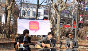 若趕上星期六下午,幸運(yùn)的你可以到弘大兒童公園門口的自由市場盡情淘寶。這里是藝術(shù)家的跳蚤市場,每周六,年輕藝術(shù)創(chuàng)作者們聚集在此展示出售自己的作品:獨(dú)一無二的T恤衫,大膽創(chuàng)意的鞋帽,無比精美的手工飾品,個(gè)性原創(chuàng)的畫作……可以說,即使只是一個(gè)小小的咖啡杯,抑或一只別致的小頭飾,都充滿了新鮮創(chuàng)意,讓人驚嘆藝術(shù)之美。經(jīng)常會(huì)有年輕的藝術(shù)家,一邊進(jìn)行藝術(shù)創(chuàng)作一邊出售物品。對(duì)他們來說,藝術(shù)絕不是一種販賣,而是一種人生的追求。在沉默低調(diào)的藝術(shù)家們專注忘我的眼神里,充滿了對(duì)藝術(shù)的熱愛與執(zhí)著,令人心生感動(dòng)。有時(shí),市場還會(huì)以各種專題進(jìn)行展示,比如“環(huán)保藝術(shù)”,就是藝術(shù)家們利用再生材料制作出各種飾品,邊創(chuàng)作邊展示,整個(gè)市場變成了一場藝術(shù)創(chuàng)意展。同時(shí),還有手藝精湛的街頭畫家、激情四射的演奏者們?cè)诖吮硌荩辛怂麄兊募尤,小小的公園變成了節(jié)日狂歡的海洋,相當(dāng)熱鬧有趣?粗@些充滿感性的藝術(shù)愛好者們的真誠與熱情,相信每個(gè)人心中都會(huì)不知不覺涌起一股激情與感動(dòng)……