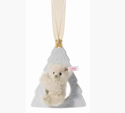 雅致LLADRO再次與Steiff泰迪熊公司合作,全新推出一件以陶瓷作為配飾的迷你泰迪熊作品。這件泰迪熊作品高12厘米,選用了優(yōu)質(zhì)的淺奶黃色馬海毛作皮毛,且四肢都可以活動(dòng)。小熊的鼻子與嘴巴用金色的線(xiàn)手工縫制。雅致為泰迪熊特別設(shè)計(jì)了圣誕樹(shù)作為裝飾物。圣誕樹(shù)以純白的霧面陶瓷制成,表面雕刻著清晰的植物脈絡(luò)作為花紋,圣誕樹(shù)的頂部則裝點(diǎn)著一顆閃亮的金星。純手工縫制在圣誕樹(shù)上的泰迪熊看似正歡快地蕩著秋千。