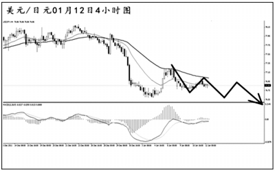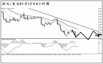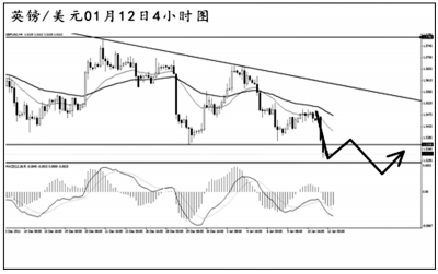歐元兌美元的下跌勢頭保持完好,4小時圖的均線系統(tǒng)和下降趨勢線雙雙壓制匯價(jià)。歐元短線也發(fā)生了動能減弱的信號,且匯價(jià)距離趨勢線阻力較遠(yuǎn),有一定的上調(diào)欲望。首先關(guān)注1.2820一線阻力,若升破此位置,下跌趨勢將暫告一段落,否則后市歐元仍將繼續(xù)創(chuàng)出新低。