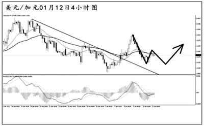 美元兌加元強(qiáng)力上行,一舉將4小時圖的下降趨勢線升破。但上沖未能持續(xù)太長的時間,匯價(jià)大起大落。由于中線上是一個大型震蕩的走勢,而日線圖的主次節(jié)奏向上。目前短線做多的風(fēng)險(xiǎn)相對偏低,若小時圖發(fā)生了有力度的上沖,都可以尋找小倉做多的機(jī)會。