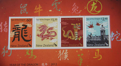 為慶祝即將到來的2012年中國農(nóng)歷龍年,世界上許多國家發(fā)行了以“龍”和“中國年”為題材的郵票,受到了各國集郵愛好者的熱捧。近年來,中國新年越來越多地呈現(xiàn)在海外郵票上,美國、法國等國家已連續(xù)多年發(fā)行生肖郵票,英國從今年開始首次發(fā)行中國新年主題郵票。