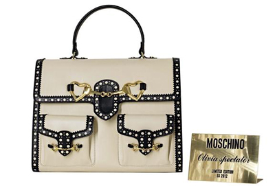 Moschino推出2012春夏系列限量手袋 “The Olivia Spectator”。這款I(lǐng)T bag借鑒了Moschino歷史檔案中的制作手法,用極其珍貴的手工制造工藝加工制成。