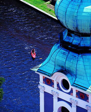 多根玻璃管組成的雕塑,藍色和綠色的玻璃發(fā)出夢幻般柔美的光線,像是一件玻璃樂器,奏響的是光的樂章。“夏朵爾藍”已成為一個專有名詞,這種藍深邃,神秘,只可用眼睛去感受。夏朵爾是一個典型的法蘭西小鎮(zhèn)。