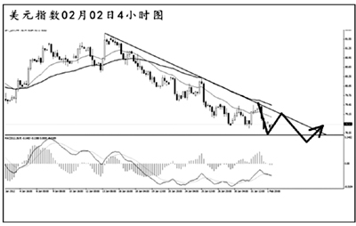 從圖中看,美元指數(shù)受制于4小時(shí)圖的下降壓力線,短線的下跌趨勢保持完好。由于美元指數(shù)持續(xù)小幅創(chuàng)出新低,下跌動(dòng)能在連續(xù)減弱。但下方的空間仍然十分廣闊,在升破趨勢線之前,不建議激進(jìn)看漲美元指數(shù)。最近一周的時(shí)間強(qiáng)動(dòng)能交替節(jié)奏頻繁,預(yù)計(jì)后市美元指數(shù)向趨勢線一帶發(fā)起回調(diào)后仍將以下行為主。