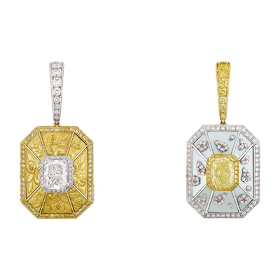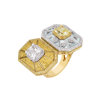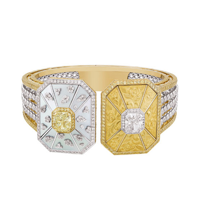d’Automne”中白色和黃色的鉆石交互對(duì)比映襯,描繪著秋日金陽的燦爛光彩。