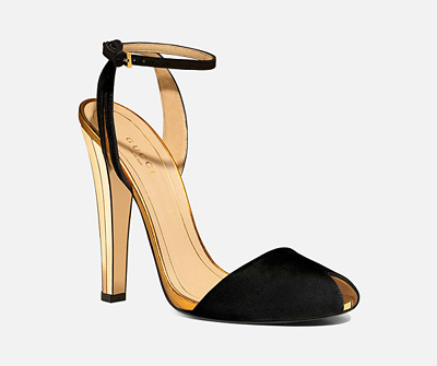 Gucci(古琦)2012春夏系列鞋履,跳脫設(shè)計(jì)的條條框框,從每一雙鞋的細(xì)節(jié)處自然流露出設(shè)計(jì)師對(duì)于時(shí)尚的敏銳感知。黑色與金色相結(jié)合,采用金屬的鞋跟,不僅彰顯質(zhì)感,而且華麗高雅,鏈條元素的加入,也顯得尤為優(yōu)雅、摩登和復(fù)古。魚(yú)嘴鞋款則使用了更具觸感的翻毛皮材質(zhì),依然是鏈條的點(diǎn)綴,卻將原本簡(jiǎn)單的基本鞋款顯得個(gè)性十足。