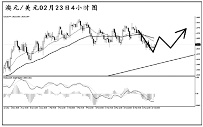 澳元兌美元高位盤整之后小幅下落,匯價向上升趨勢線支撐1.0520一線挺進。雖然澳元短線已轉為下跌趨勢,但從4小時圖上看,澳元有形成abc結構調(diào)整的可能,若此調(diào)整成立,后市澳元仍將恢復漲勢。由于黃金近期的表現(xiàn)實在強勁,短線看空澳元需謹慎。