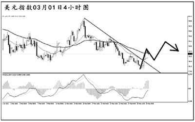從圖形上看,美元指數(shù)小幅創(chuàng)出新低之后強(qiáng)力反彈,目前已經(jīng)將4小時(shí)圖的均線系統(tǒng)升破,主趨勢(shì)也已轉(zhuǎn)為向上。小時(shí)圖道氏高點(diǎn)阻力在78.65,美元指數(shù)若站穩(wěn)在此位置上方,后市還將展開(kāi)更為明顯的上漲,下一個(gè)挑戰(zhàn)的目標(biāo)為日線圖阻力80.10,短線可繼續(xù)看多。