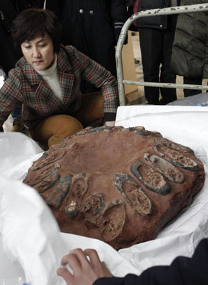 一件約有6500萬年歷史的“恐龍蛋窩”化石1984年在中國出土之后,幾經(jīng)輾轉(zhuǎn)流失到境外,2003年被一名美國收藏家重金買下,并于2006年在洛杉磯組織的一次公開拍賣中以42萬美元價(jià)格成交,后經(jīng)多方交涉無償歸還中國。此件“恐龍蛋窩”化石包含22枚盜蛋龍恐龍蛋,其中19枚恐龍蛋中可見初具雛形的恐龍胚胎。這也是中國政府首次通過外交途徑追索流失國外的古生物化石。