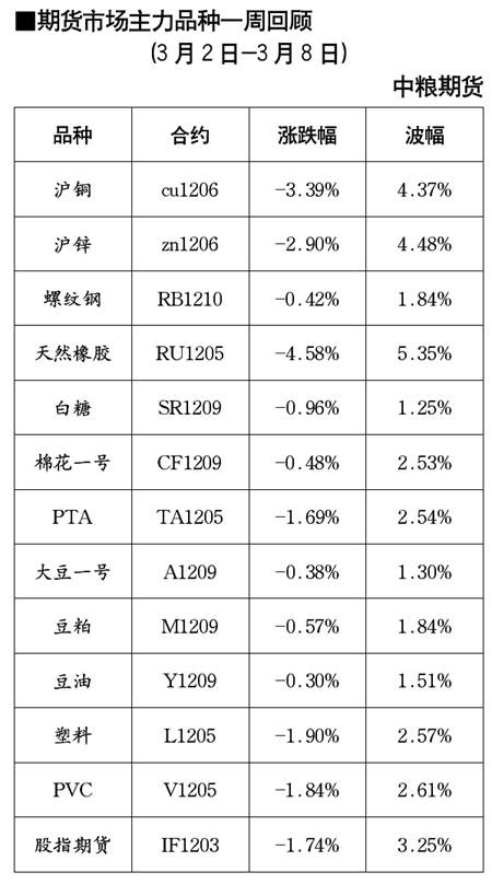 期貨市場主力品種一周回顧[3月2日-3月8日]