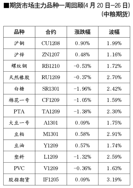 · 期貨市場(chǎng)主力品種一周回顧[4月13日-19日] 2012-04-20