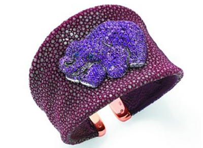 Gruosi萌生將稀有的珍珠魚皮和名貴的鉆石珠寶相結(jié)合的想法,并成功將珍珠魚皮逐打造成品牌經(jīng)典標(biāo)志之一;2005年,運用黃金調(diào)色工藝,一種如焦糖般甜蜜且彌漫著高級金屬光澤感的金黃色——Browny