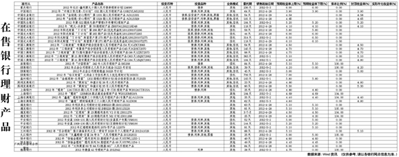 在售銀行理財(cái)產(chǎn)品[2012-05-04]