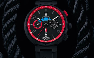 Vuitton(路易威登)長久以來作為該賽事的贊助商,在今年也發(fā)表了一款全新紀念腕表,黑色的表殼搭配搶眼的紅色表圈與藍色點綴,44mm的表盤和表帶采用了橡膠防滑材料,表帶上更設計有賽事獎杯的造型,包含倒計時、鬧鈴及四十二小時動力儲蓄功能。兩種版本將全球限量發(fā)售720支,分別為石英機芯和更高級的機械機芯可供選擇。