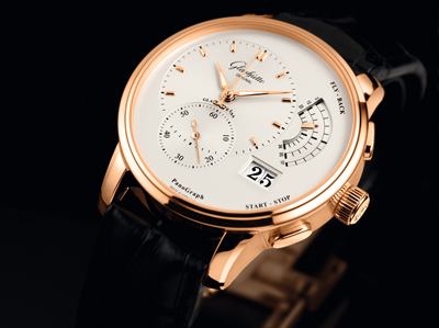 新的設計理念中青睞于采用更大的圓形表殼,在表盤左側是交互的小時/分鐘表盤和小秒針盤,格拉蘇蒂大日期顯示和以往款式一樣位于四點的時刻引人注目。該款腕表非凡的三十分鐘飛返計時功能采用三個每十分鐘的刻度和三個單獨的指針,以現(xiàn)代潮流全新演繹原來的設計。