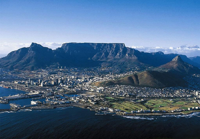 造訪桌山相當容易,可以搭乘纜車,也可以徒步攀登,邊走邊欣賞滿山遍野盛開的雛菊,以及爭奇斗艷的花群。即使植物學家來到這里,也會覺得目不暇給。在桌山山頂上,人們可將開普敦和開普半島的蔚藍海岸線全部收入眼底,還可以遠眺當年曼德拉被囚禁的孤島——羅賓島,更可以一覽大西洋及印度洋交匯處的美景。