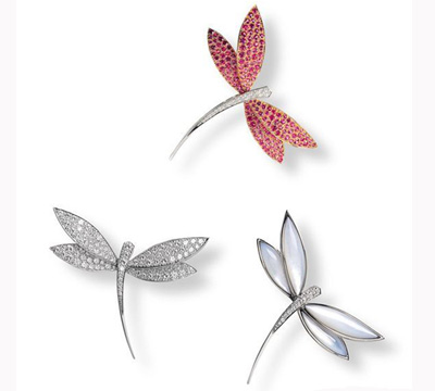梵克雅寶的蜻蜓系列珠寶創(chuàng)作于2000年,以大自然生物為靈感,體現(xiàn)了百年珠寶世家對靈巧、纖柔和嫵媚的形態(tài)的堅持,以黃金或白金打造栩栩如生的形象,搭配粉紅剛玉、鉆石或白色珍珠母貝,翅膀和軀干不對稱的設(shè)計創(chuàng)意讓蜻蜓更富有立體感,仿佛隨時要飛離身畔。