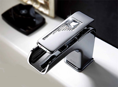 水晶衛(wèi)浴系列中的水龍頭,外形流暢大氣,表面鑲嵌水晶,靜靜地躺在水池邊發(fā)出閃爍的光芒,在你洗手的時候,水珠滑落手中的晶瑩,映襯水晶折射的燦爛,城堡中的君王,在鑲金嵌玉的洗手池旁,看到的恐怕也是這滿眼的BLING