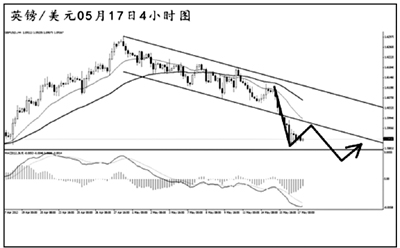 歐元兌美元下跌加速,雖然短線持續(xù)發(fā)生了MACD的底背離信號,但由于下降壓力線遲遲未能升破,并未能影響到歐元完好的跌勢。下方的強支撐在1月中的低點1.2625,預(yù)計歐元將向此位置發(fā)起沖擊。短線匯價面臨上調(diào),繼續(xù)關(guān)注1.2865的趨勢線壓力。
