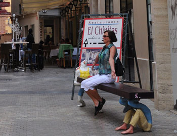 | 街頭的長(zhǎng)椅,上面坐著的可不是雕塑喲 |