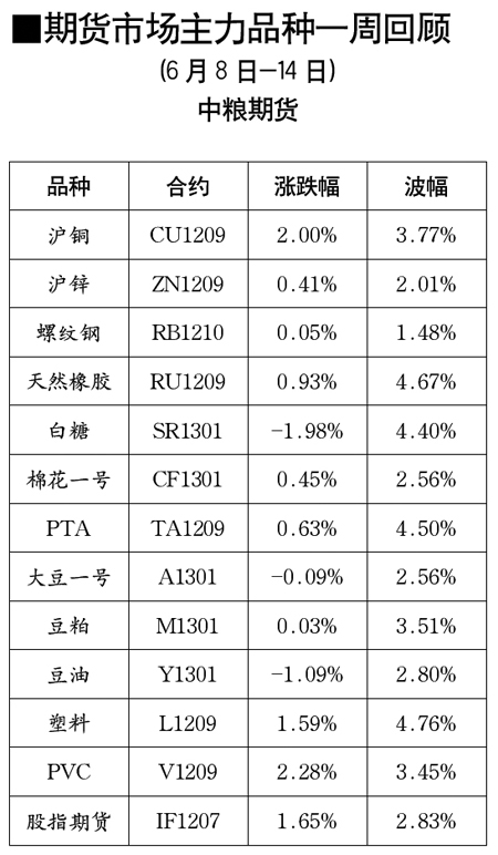 期貨市場(chǎng)主力品種一周回顧[6月8日-14日]
