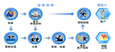 1、理賠流程圖示:客戶可通過該圖了解理賠的基本步驟和流程,清楚理賠處理的進(jìn)展。