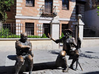塞萬提斯故居和門口的堂吉訶德和桑橋雕塑。 |