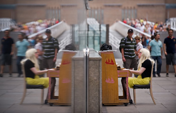 從倫敦金融城的小廣場,到利物浦街的火車站,匯集著爵士、古典、流行音樂的鋼琴聲,傳遍這個(gè)即將迎來奧運(yùn)會的城市。