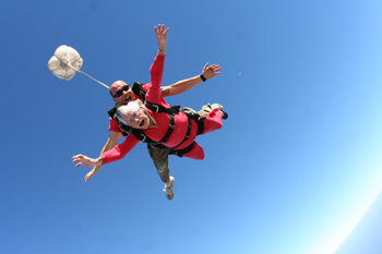 斯萊特住在緬因州?巳。當(dāng)?shù)貢r(shí)間15日下午,他在緬因州皮茨菲爾德機(jī)場(chǎng)上空跳傘。跳傘時(shí),他由跳傘教練馬特·里恩多陪同,從升至3000米空中的飛機(jī)上跳下。在一名引導(dǎo)員的指引下,兩人緩緩降落,順利完成這次雙人跳傘。