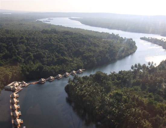 由12個(gè)圓頂帳篷組成的“四河水上客!本拖裣翟阡毓影哆叺囊粭l長(zhǎng)長(zhǎng)的鎖鏈,在荒僻的雨林地帶顯得有一點(diǎn)點(diǎn)奢華。每間45平米大小的客房都配備無線網(wǎng)絡(luò)連接、迷你酒吧和寬屏電視機(jī)等設(shè)施?蜅(duì)于環(huán)保的重視程度讓人印象深刻。這里竟然建有一個(gè)污水處理廠,而且非環(huán)保材料不用。讓客棧引以為豪的是,在他們的影響下,當(dāng)?shù)厝撕陀慰投家庾R(shí)到環(huán)保的重要性。
