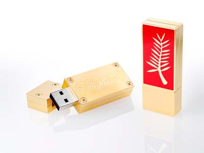 瑞士腕表及珠寶制造商Chopard(蕭邦)的這款奢華U盤(pán)以黃金打制,表面拋光,邊緣作圓角處理。正面是大紅底漆的戛納電影節(jié)金棕櫚標(biāo)志,背面是蕭邦品牌標(biāo)志。 這款U盤(pán)在近期舉行的戛納電影節(jié)上被送給VIP賓客,用以展示內(nèi)存的蕭邦“紅地毯”系列珠寶。黃金U盤(pán)的設(shè)計(jì)者為Pascal Grenacher,將專供蕭邦的VIP顧客。