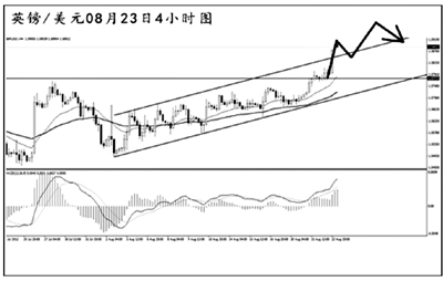 歐元兌美元將此前的窄幅盤整區(qū)間上沿1.2385強(qiáng)力升破,短線匯價(jià)繼續(xù)沿著4小時(shí)圖的上升通道穩(wěn)步上行。日線圖上看,歐元已經(jīng)將均線系統(tǒng)的壓制位升破,上方的下一道強(qiáng)阻在道氏高點(diǎn)1.2750,預(yù)計(jì)匯價(jià)將繼續(xù)向此位置發(fā)起沖擊。短線歐元面臨一定的下調(diào),但整體的上行態(tài)勢(shì)不變。