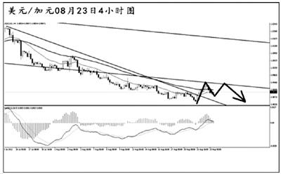 美元兌瑞郎此前未能突破下降通道,短線重新爆發(fā)出下跌動(dòng)能,將小震蕩區(qū)間下沿0.9695跌破。日線圖的均線系統(tǒng)已被跌破,中線的漲勢(shì)遭遇一定的挑戰(zhàn)。下方強(qiáng)支撐在道氏低點(diǎn)0.9420,預(yù)計(jì)匯價(jià)將向此位置逐漸發(fā)起挑戰(zhàn)。短線匯價(jià)有一定的上調(diào)壓力,但隨后繼續(xù)下行的概率較大。
