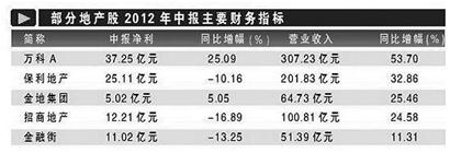 Wind資訊統(tǒng)計(jì)數(shù)據(jù)顯示,截至2012年8月25日,滬深兩市已有101家房地產(chǎn)上市公司公布了半年報(bào),總體來(lái)看,上半年房企銷售普遍飄紅,但利潤(rùn)增幅明顯落后于銷售增幅“招保萬(wàn)金”四大行業(yè)巨頭上半年?duì)I業(yè)收入總額超過(guò)674億元,相比去年的484億元大幅增長(zhǎng)近40%;但凈利潤(rùn)只比去年同期增長(zhǎng)不足2億元,為79.59億元。