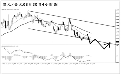 澳元兌美元強力跌破了日線圖的上升趨勢線之后,又刺破了4小時圖的震蕩通道下沿,短線的下跌勢頭迅猛。目前匯價正在考驗日線圖均線系統(tǒng)的依托位,由于下方近期無明顯強支撐,澳元的下跌空間廣闊。短線匯價在對通道下沿發(fā)起回抽,只要澳元不強力回到通道內(nèi)部,后市仍將以下行回落為主。