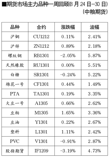 · 期貨市場(chǎng)主力品種一周回顧[8月17日-23日] 2012-08-24
