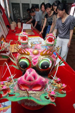日前,一座面積400多平方米的“中國濰坊民間工藝品陳列館”在山東省濰坊市向市民免費開放。陳列館將風箏、年畫、布玩具、核雕、絨秀等濰坊市上百種工藝美術(shù)品進行歸納、整理、集中展示,向廣大市民宣傳非物質(zhì)文化遺產(chǎn),吸引眾多市民前來參觀。新華社發(fā)