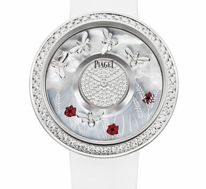 Perignon,竟然還能飄出細密的泡沫,味道平和,很好入口,一片緋紅很快從杯子移到臉龐上。這個時節(jié),你就該戴上鑲有共重2克拉的188顆美鉆的“夏”,讓我欣賞盤上小蜜蜂在飛旋。蔚藍跟乳白的珠貝背景,表現(xiàn)著朗日高懸?窗,有一只小蜜蜂嘴饞了,飛到大紅花與麥穗?yún)仓。夏天有麥穗?幻想是沒有界限的。庭院對面的房間開了,也許出門的是這里的老住客毛姆呢。