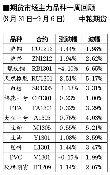 期貨市場主力品種一周回顧[8月31日-9月6日]