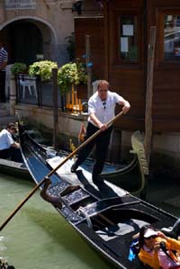 每條岡朵拉有兩個(gè)部位可以體現(xiàn)工匠們的想象力,一個(gè)是自然奔放的船頭,很像15和16世紀(jì)用的六齒鉞戟,另一個(gè)是依奧尼亞式船尾。到了18世紀(jì),這種威尼斯尖舟的形狀和大小才漸漸地固定到今天這個(gè)樣子。據(jù)說(shuō),從前的岡朵拉也有大船,由好幾位船夫同時(shí)劃槳。