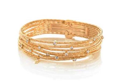朝陽手鐲將華洛芙(Wellendorff)的經(jīng)典金絲編花工藝重新定義,在每條金繩上都增添一道額外的工序,壓制出一個(gè)個(gè)細(xì)微的凹痕,匯聚并折射出耀眼光線。17顆鉆石被巧妙隨意地鑲嵌在黃金手鏈。具有專利的18K金鉤扣,通過向內(nèi)折疊的設(shè)計(jì),隱藏在手鏈之下,安全牢固的設(shè)計(jì)可讓佩戴者不用擔(dān)心日常佩戴時(shí)的拉伸和磨練,加上極具象征性的W鉆石標(biāo)記,使這款朝陽手鐲成為不可多得的杰作。