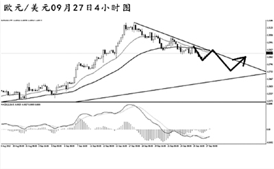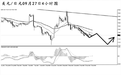 英鎊兌美元小幅創(chuàng)出日線圖新高之后急速下挫,目前在對此前的上漲進行調(diào)整。4小時圖的均線系統(tǒng)和道氏低點支撐雙雙被刺破,預(yù)示著英鎊仍有進一步的下跌空間。而MACD已經(jīng)擺脫了空頭動能充盈的階段,后市英鎊小幅沖高之后仍將以小幅下調(diào)的節(jié)奏運行。