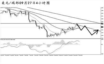 美元兌瑞郎上行挑戰(zhàn)日線圖此前被跌破的道氏低點0.9420一線的阻力,此位置同時也是4小時圖道氏高點的阻力區(qū)域,匯價在此位置遇阻下落。如果美元兌瑞郎不突破0.9420,此波上漲很有可能成為此前下跌的次級趨勢調(diào)整,后市匯價仍有繼續(xù)走低的風險。繼續(xù)關(guān)注此阻力區(qū)域的突破進程來決定短線的操作方向。