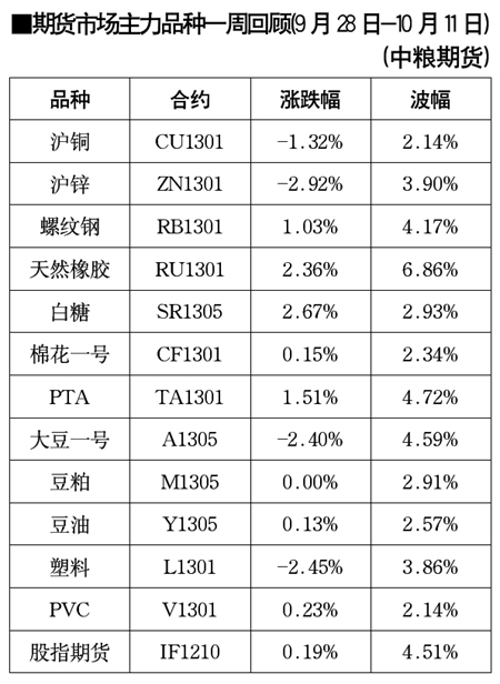 期貨市場主力品種一周回顧[9月28日-10月11日]