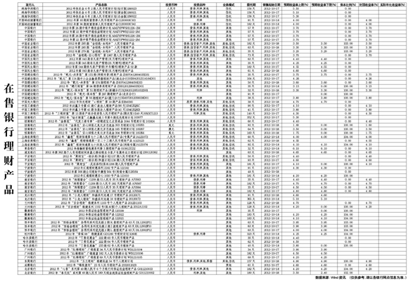 在售銀行理財(cái)產(chǎn)品[2012-10-19]