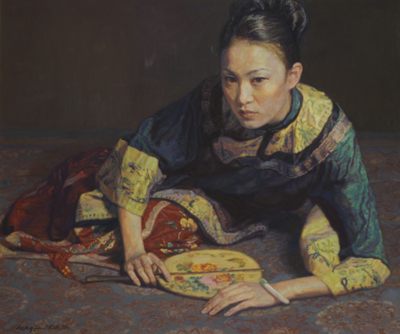 中國書畫專拍場將推出吳冠中、林風眠、張大千、陳逸飛、常玉等著名畫家的數(shù)幅珍品,最受矚目的當屬陳逸飛的油畫作品《斜臥的持扇美人》,畫上有畫家本人的中英文簽名,估價500-700萬港元。