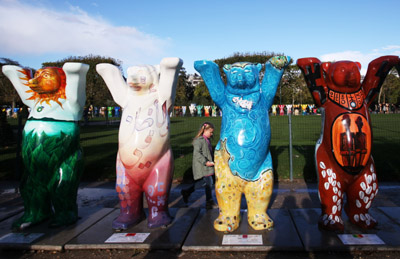 為紀(jì)念巴黎和柏林締結(jié)友好城市25周年,140座“聯(lián)合巴迪熊”12日亮相巴黎埃菲爾鐵塔下的戰(zhàn)神廣場。色彩繽紛的“巴迪熊”,高2米,手牽手排成兩行矗立于戰(zhàn)神廣場。每只“巴迪熊”都代表一個聯(lián)合國承認(rèn)的國家,并由每個國家的藝術(shù)家為自己的國家進(jìn)行設(shè)計(jì)制作。從2002年起,“聯(lián)合巴迪熊”已經(jīng)在全球25個城市舉行了巡展,其中包括中國香港,并在巡展所到的每一個城市舉行相關(guān)的募捐和拍賣活動。目前已為聯(lián)合國兒童基金及當(dāng)?shù)貎和Wo(hù)組織籌得捐款190萬歐元。